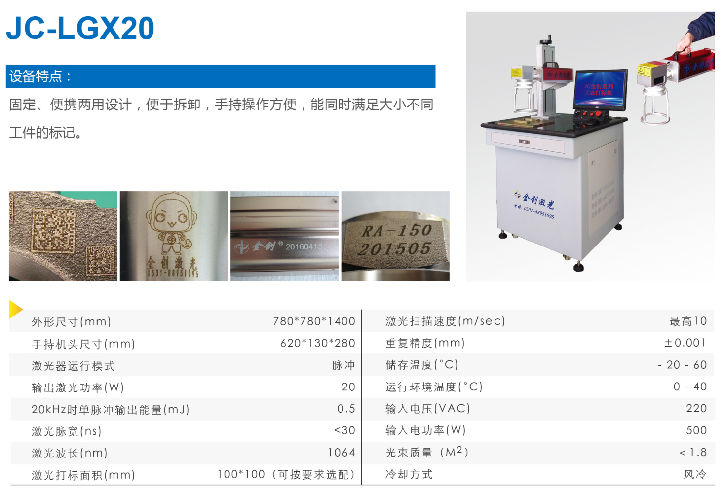 Products > Laser marking machine > Optical fiber dual purpose laser marking machine jc-gx20l