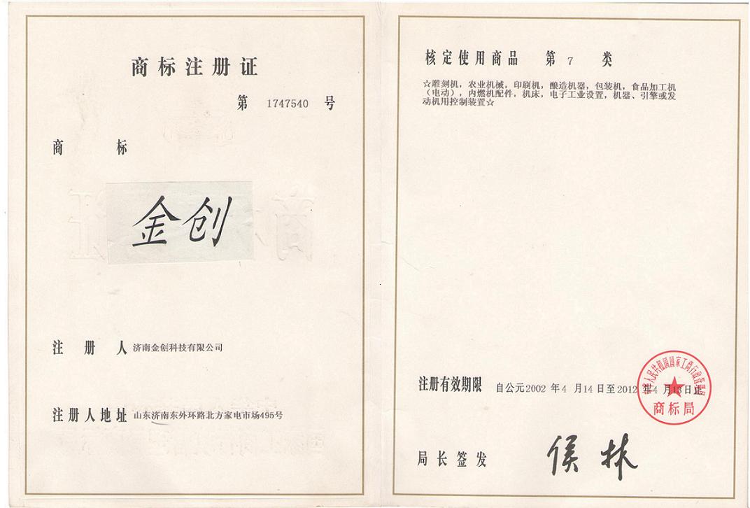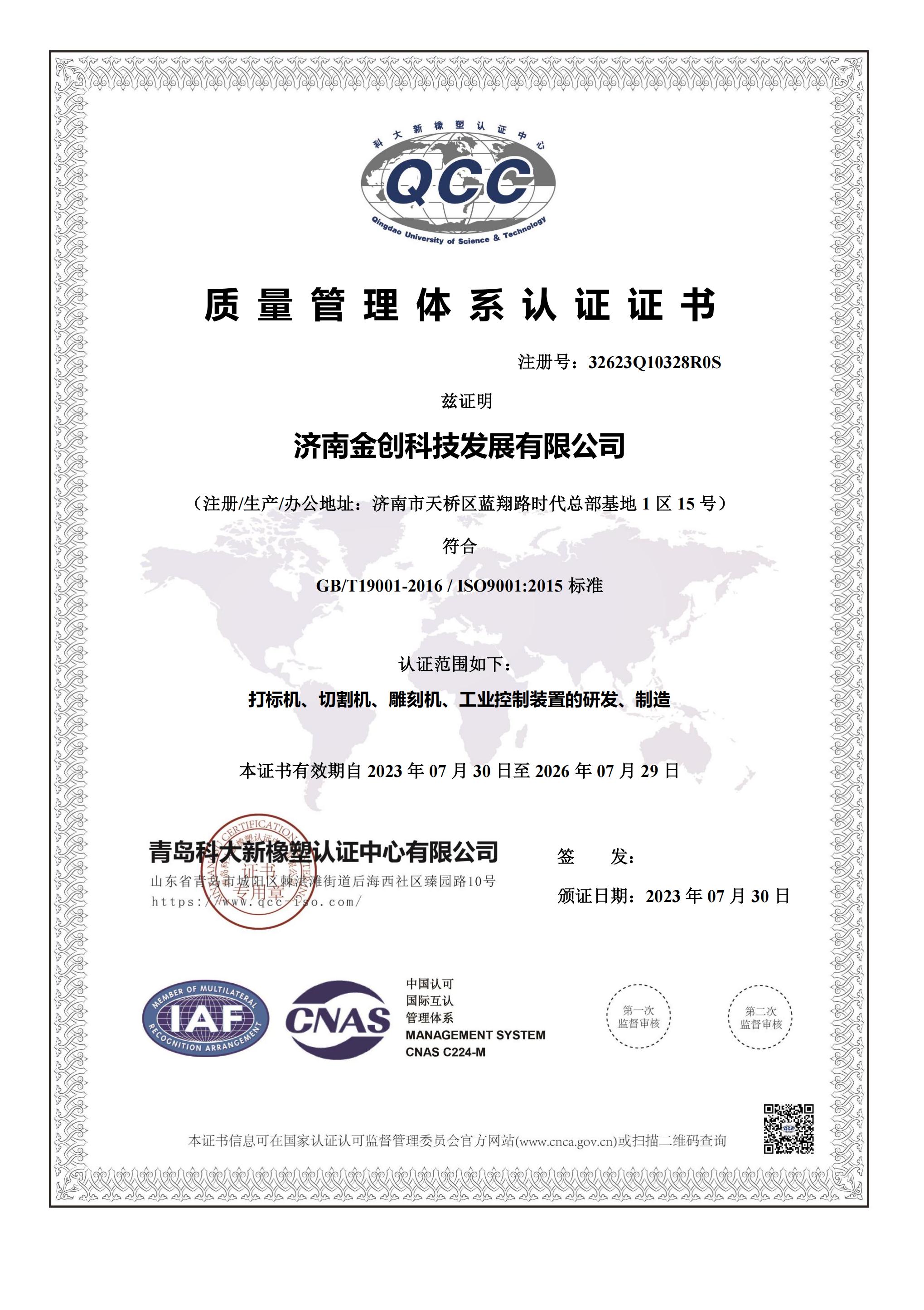 [金創(chuàng)]中國著名品牌,金創(chuàng)激光為國內(nèi)外客戶提供一整套激光加工解決方案及相關(guān)配套設施,主要產(chǎn)品包括激光打標機、激光切割機、激光雕刻機、激光焊接機、自動化控制裝備、氣動打標機、噴碼機、電腐蝕打標機等幾十余種。創(chuàng)建以來,公司秉承“一切為客戶,服務于客戶”的理念,奉行“以科技發(fā)展為先導,以活力創(chuàng)新為紐帶”的經(jīng)營宗旨,本著“與國際接軌,服務本土”的創(chuàng)新觀念,在產(chǎn)品的研制、生產(chǎn)、銷售等方面已取得可喜的成績,成為中國機電一體化產(chǎn)品生產(chǎn)的重要力量。