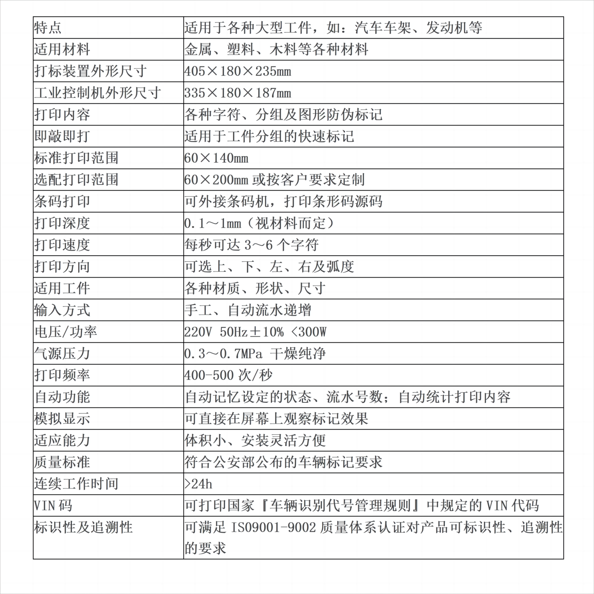 便攜式打標機是把打印機頭放到工件上去工作,機頭設(shè)計輕便,便于攜帶,對于不易搬動的大型工件輕松實現(xiàn)打標,適用于車架、發(fā)動機、鋼軌、鋼瓶等大工件的標記。